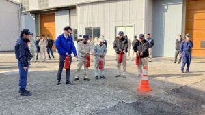 岡豊工業団地自治会の消防訓練が11月27日、当社本社工場駐車場にて、南国消防署のご協力・ご指導のもと実施されました。